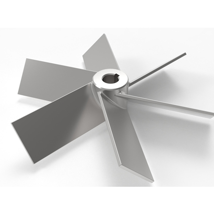 說明:最高轉(zhuǎn)速可達600rpm,斜葉角度66°的用于3葉開啟渦輪,攪拌效果類似于3葉推進式。